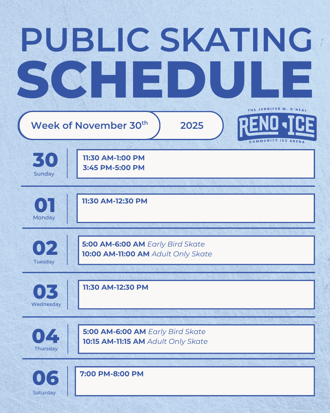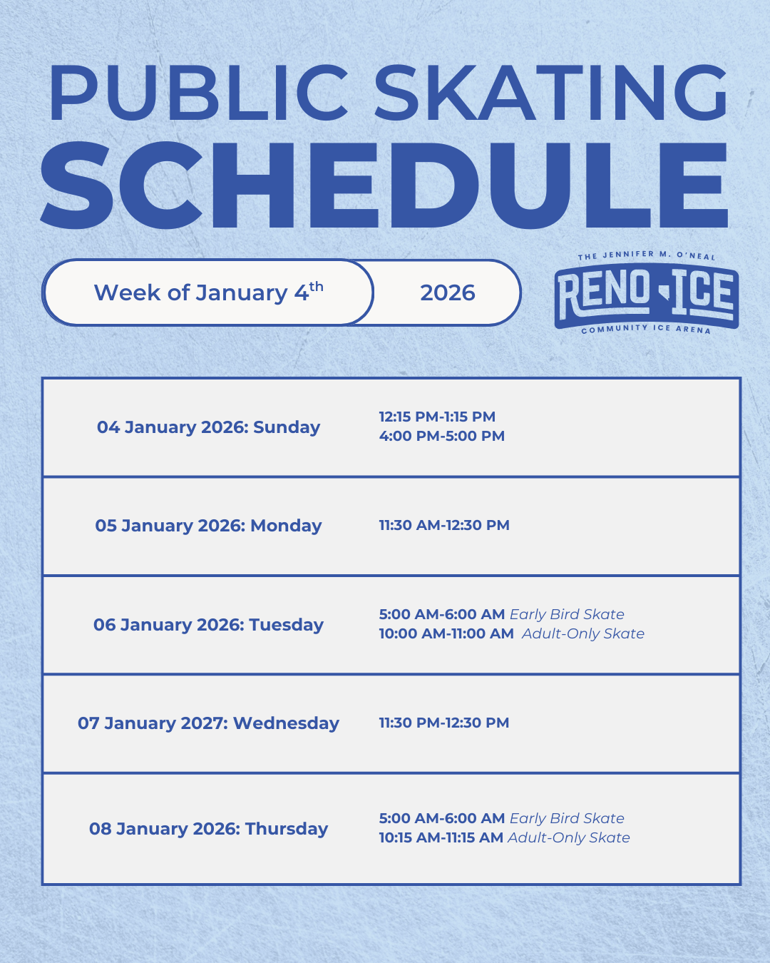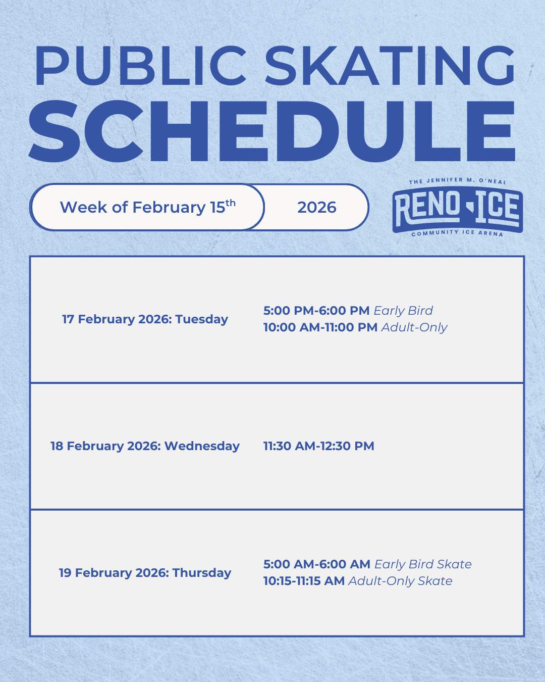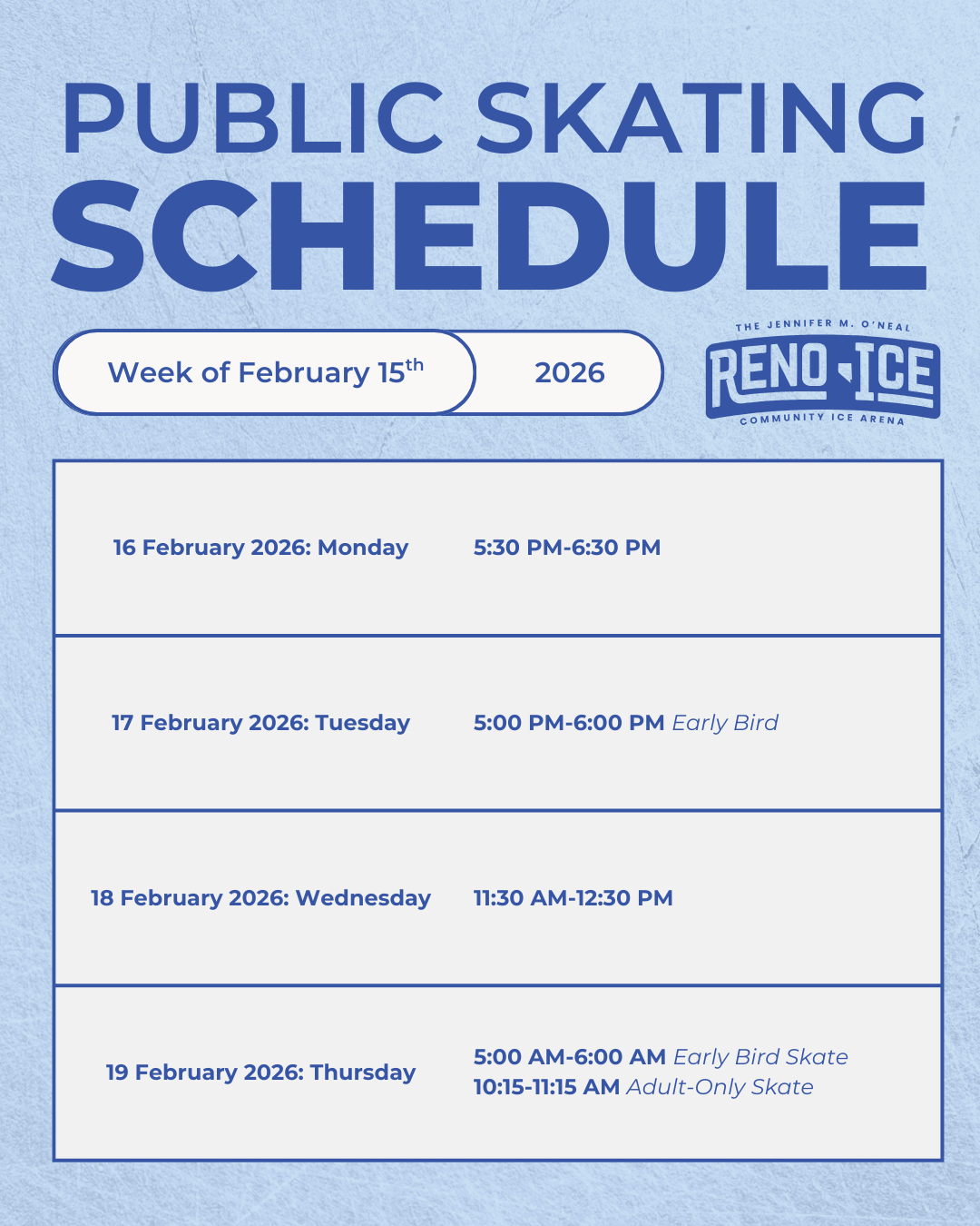 Reno Ice is an indoor, year-round community ice rink offering programs for skaters of all ages and abilities.