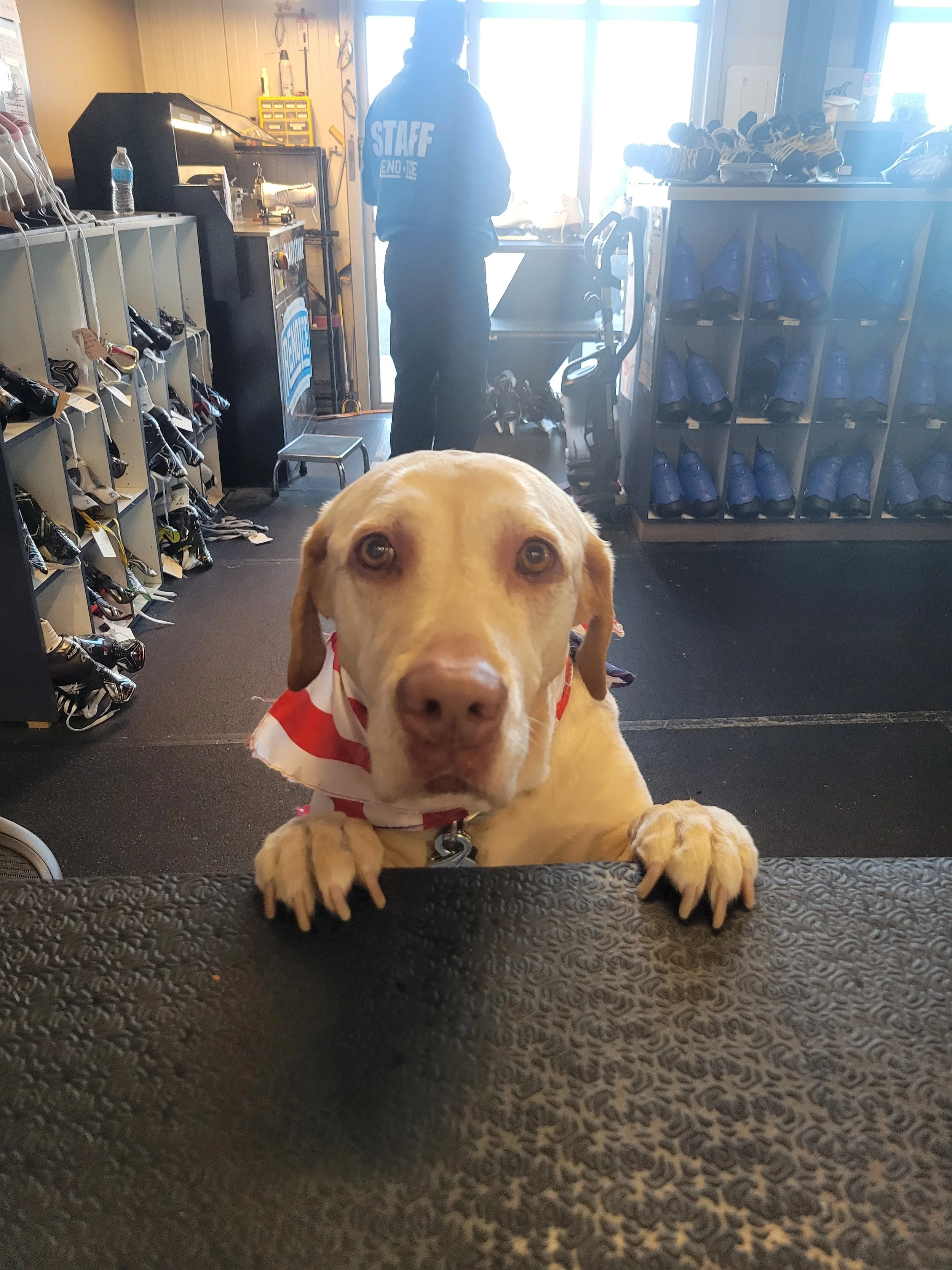 Dogs and ice sports go together like peanut butter and jelly! At Reno Ice, we’re happy to welcome well-behaved pups (on a leash, please). Above are a few of the regular doggos at our ice rink, and they are very good boys and girls.